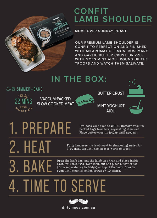 In our Australian summer butter melts very quickly, we recommend you keep the garlic crust for the lamb in the fridge until you are ready to finish it in the oven. It will keep it nice and firm.